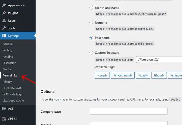 Go to Settings → Permalinks URL user affects both experience and SEO.