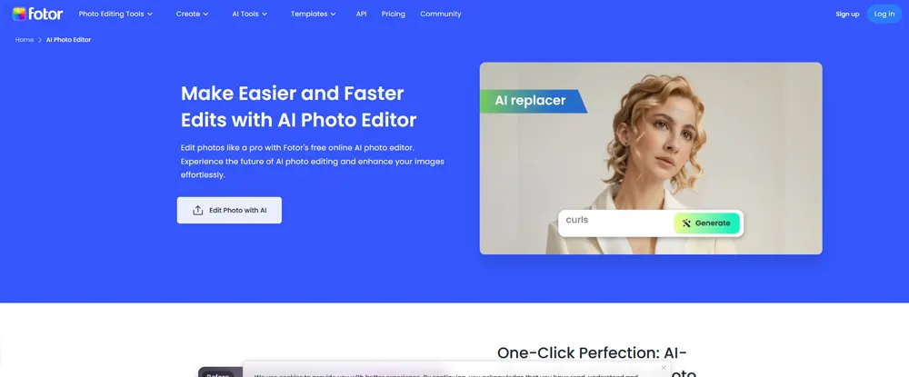 Fotor is a browser-based and mobile-friendly AI photo editor built for convenience. It offers fast background removal, one-click enhancements, portrait retouching, and AI art generation. While not as feature-rich as Photoshop, Fotor is ideal for quick edits, making it popular among small businesses and social media creators.