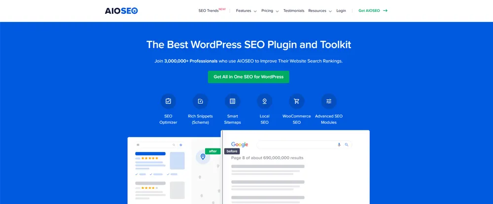 All in One SEO, or AIOSEO, is one of the oldest WordPress SEO plugins, created in 2007. It offers a robust toolkit designed for users who want advanced features but in a user-friendly package. From on-page optimization to local SEO, AIOSEO covers a wide range of needs.