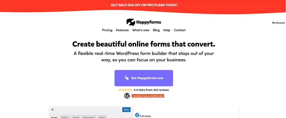 HappyForms is a smooth, drag-and-drop web form plugins tightly integrated with Gutenberg. The free version includes 7 field types, a live preview interface, and 50+ styling controls, all PCB-friendly and lightweight. It offers honeypot-based spam prevention, letting you avoid CAPTCHA clutter. Ideal for those building forms that match their theme naturally.